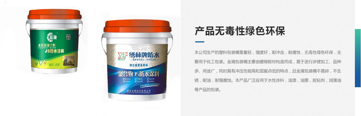 本公司生產(chǎn)的塑料包裝桶重量輕,強(qiáng)度好,耐沖擊,耐腐蝕,無毒性綠色環(huán)保,主要用于化工包裝。金屬包裝桶主要由鍍錫板材構(gòu)造而成,易于進(jìn)行涂鍍加工、品種多、用途廣,同時(shí)具有沖壓性能高和屈服點(diǎn)低的特點(diǎn),且金屬包裝桶不易碎,不生銹,耐油,耐強(qiáng)腐蝕。本產(chǎn)品廣泛應(yīng)用于水性涂料,油漆,油墨,膠粘劑,潤(rùn)滑油等產(chǎn)品的包裝。